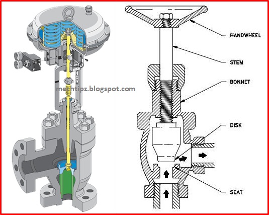 A globe valve is a linear motion valve used to stop, start, and regulate fluid flow.The globe valve disk can be totally removed from the flow path or it can completely close the flow path. Distinguished property or advantage of this flow control valve is throttling of fluids with good characteristics.You might have often see this valve at the discharge side of pumps for flow control. At the pump discharge side,this valve is often used in combination with check valve and gate valve for better operation and isolation.